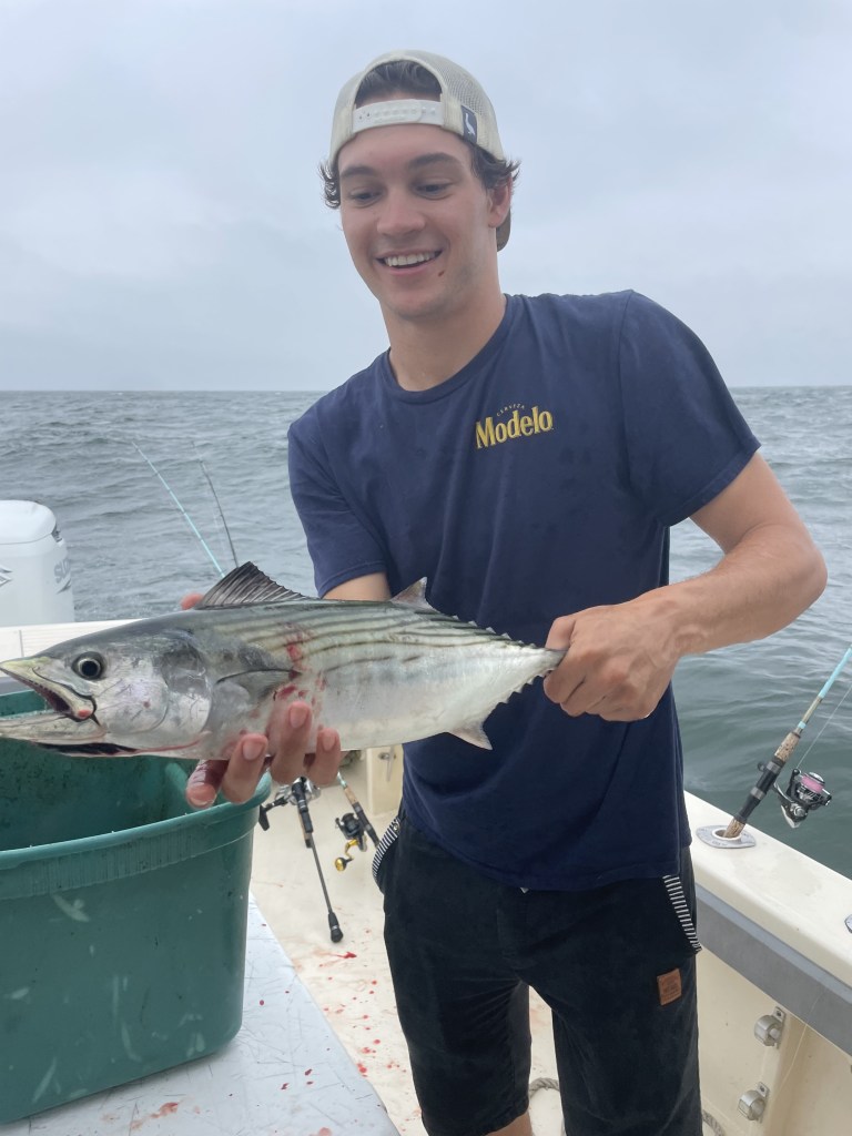 Fall its bonita and albies that are made to be caught off my boat. Ideal front platform for casting to get right on top of the fish. If your a one man show on a fly rod this boat set up is perfect for you. Tautog will be back open to a 5 fish limit and big cunner that taste amazing. And the fall run of striper fishing is amazing in the bay with big blitzes.